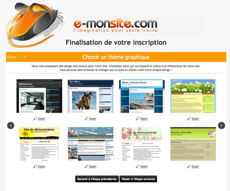 - e-monsite : e-monsite est un logiciel CMS créateur de site en ligne 100% français. Le logiciel propose un vaste catalogue de templates que vous pouvez choisir facilement grâce à son système de tri, et l’ensemble des étapes de la création et de la gestion de votre site internet se fait à partir d’un tableau de bord : ajout d’éléments, paramétrage des modules, gestion des fichiers stockés… e-monsite est accessible gratuitement, mais propose en parallèle des offres payantes qui démarrent à 3.50€ par mois.