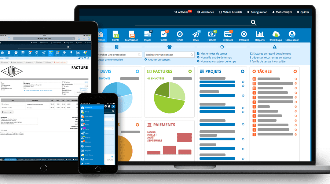 Si vous êtes à la tête d’une TPE/PME et que vous souhaitez bénéficier d’un accompagnement dédié pour la gestion de votre comptabilité, la solution Quickbooks est l’idéale. Gestion automatisée des paiements des factures, des devis et notes de frais, suivi quotidien de l’évolution de votre trésorerie, ou encore synchronisation bancaire sont autant de fonctionnalités vous permettant de gérer efficacement les finances de votre TPE/PME grâce à Quickbooks. Le logiciel SaaS Quicbooks est accessible depuis un ordinateur, mais aussi depuis un appareil mobile, vous assurant ainsi une gestion en temps réel de votre entreprise. Quickbooks est accessible en souscrivant un abonnement facturé à partir de 10€ par mois.