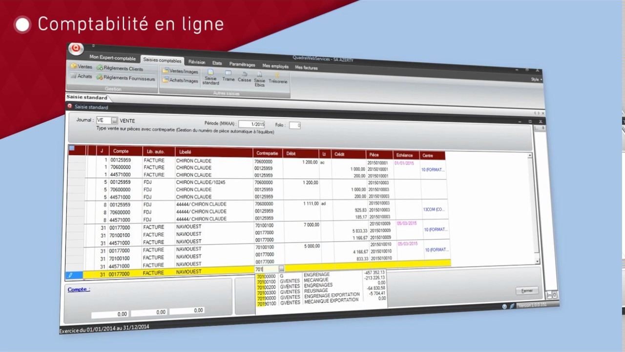 Sauf cas exceptionnel, il est donc inutile de modifier cette donnée comptable. Cela a pour avantage de réduire les erreurs d’enregistrement (mais aussi les fraudes), ce qui assurera la véracité des documents comptables produits. Ensuite, un logiciel comptable permet de créer rapidement et de manière sécurisée des factures pour chaque ventes ou achats réalisés tout au long de l’exercice de l’entreprise. Pour finir, un logiciel comptable vous permet d’avoir une vision globale de l’ensemble des flux de trésorerie de l’entreprise, grâce à un tableau simple et ergonomique.