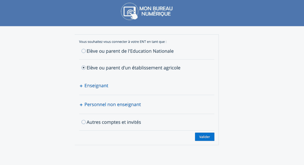 • Sélectionnez votre profil (élève, parent, enseignant, personnel).