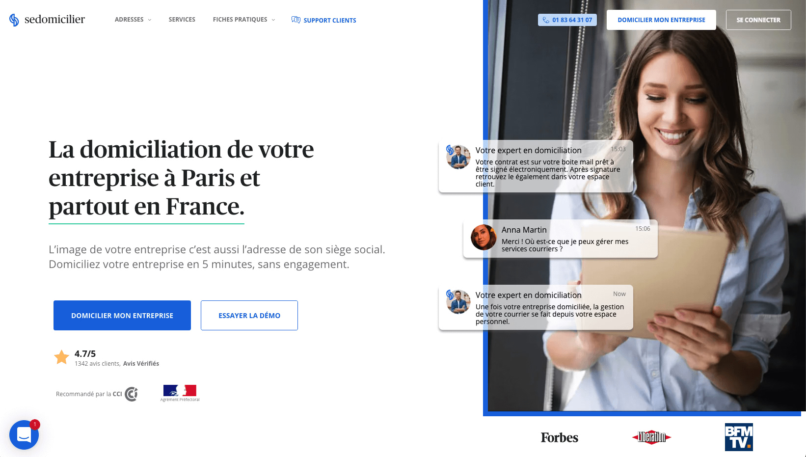 L’accompagnement est, la plupart du temps, la bête noire des sites de domiciliation d’entreprise. Ce n’est toutefois pas le cas de SeDomicilier qui a en possession un support client et qui met à disposition de ses utilisateurs une FAQ très complète. La startup de Paris propose une qualité de service parfois supérieure à la moyenne du secteur. Tous les services peuvent être souscrits soit de façon ponctuelle pour un besoin déterminé, soit en abonnement pour des besoins alternatifs.