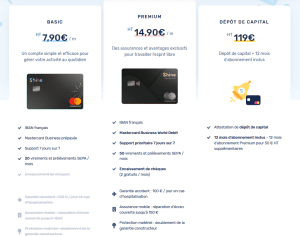 À ce sujet, notez que la néo-banque française Shine, ne propose que des offres et packs qui s’articulent autour des statuts des différentes structures mentionnées plus haut. Il s’agit des micro-entreprises et des sociétés individuelles.